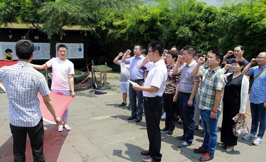 ![]() 在参观完警示教育展馆后,大家怀着无比崇敬的心情,赴罗瑞卿故居进行参观,了解了罗瑞卿将军的戎马一生。罗瑞卿同志是久经考验的无产阶级革命家、军事家,党、国家和军队的卓越领导人;他为党领导的革命、建设、改革事业贡献了毕生精力,作出了重大贡献。在罗瑞卿大将半身铜像前,党员同志们在党旗下进行了庄严宣誓,重温了神圣的入党誓言。通过参观,大家接受了一次深刻的革命洗礼,深深体会到现在安定而舒适的生活来之不易,纷纷表示要更加珍惜工作岗位,继承革命先烈的优秀传统,发扬艰苦奋斗、坚韧不拔的优秀共产党员品质,弘扬民族精神,不断开拓进取,为共产主义事业奋斗终身。